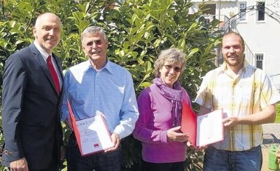 Ehrungen beim SPD-Ortsverein Gerolzhofen: Auf dem Bild von links Vorsitzender Erich Servatius, Altbürgermeister Hartmut Bräuer (40 Jahre Mitglied), Evamaria Bräuer (25 Jahre) und stellvertretender Vorsitzender Lukas Bräuer.