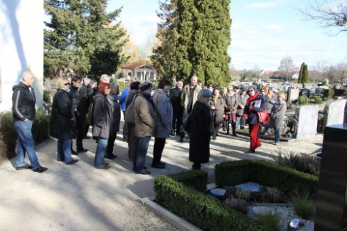 Stadt-und Museumsführerin Evamaria Bräuer hatte aus diesem Anlass eine Themenkombination „Kirchhof, Keller und Kerker“ vorbereitet. Start war auf dem Städt. Friedhof St. Michael. Hier im ältesten Teil des von frithof = umfriedet, abgeleiteten Begriffs, sind zahlreiche Ehren-Grabstätten von Wohltätern und verstorbenen, engagierten Bürgern und Kommunalpolitikern zu besichtigen. Die große Besuchergruppe ging vorbei an den Grabstätten von Dr. Josef. Hersam, des Glockenstifters Schanz, des Heimatdichters Franz Mittenzwey, des Stadtrates und SPD Ehrenvorsitzenden Julius Wülk und der mutigen, couragierten Frau Barbara Vetter, die während des sog. Frauenaufstandes mit Todesurteil belegt und von Exekution bedroht war.